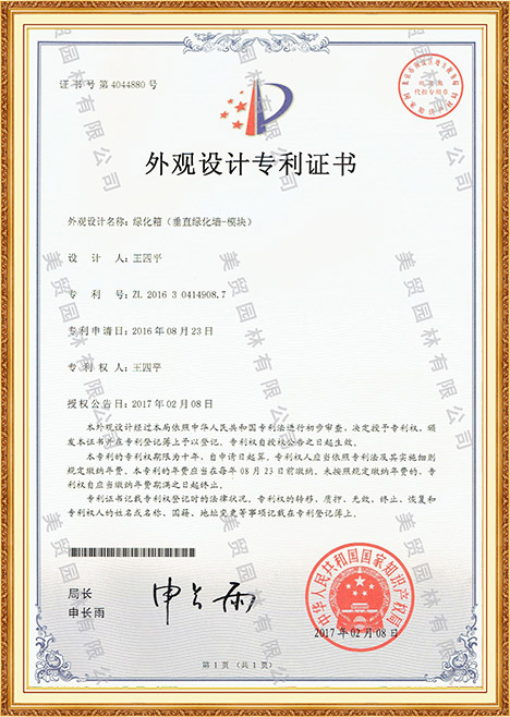 8868网页有限公司荣获多项专利及证书,包括外观设计,园林设计,产品设计等,产品经过国家质监局检测合格发放质检合格证书。